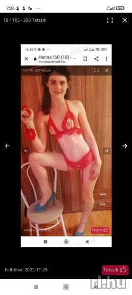 Kapcsolatfelvétel: Nagyon könnyű volt gyorsan felvette és gyorsan ledumáltuk . Külső: A képek tökéletesen mutatják hogy néz ki mondjuk ruha nélkül sokkal szebb. Hozzáállás: Teljesen belead mindent hogy kielégítsen, és nagyon jó beszélgető partner is. Együttlét: Tökéletes francia kezdés a nyelve nagyon jól mozog, aktus nagyon jó főleg ha 1 extrát kérsz hozzá, amúgy baromi szűk. Elégedettség és Ajánlás: Nagyon ajánlom bárkinek. |